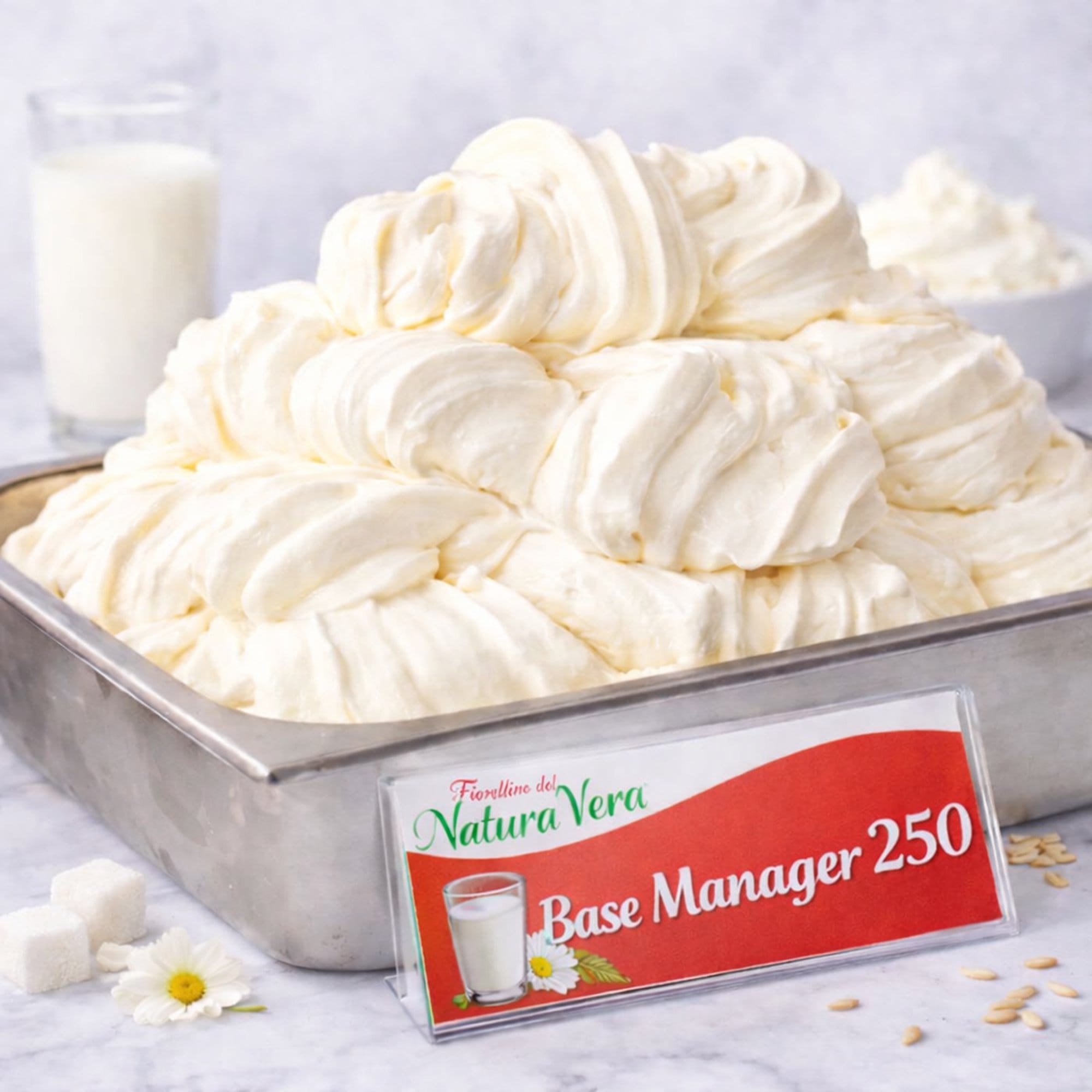 Nature Vera Base 250 Manager verleiht Ihrem Eis eine optimale Struktur. Die einzelnen Komponenten sind perfekt aufeinander abgestimmt. Somit erhalten Sie eine voluminöse und cremige Eiskreation für ein optimales Ergebnis.