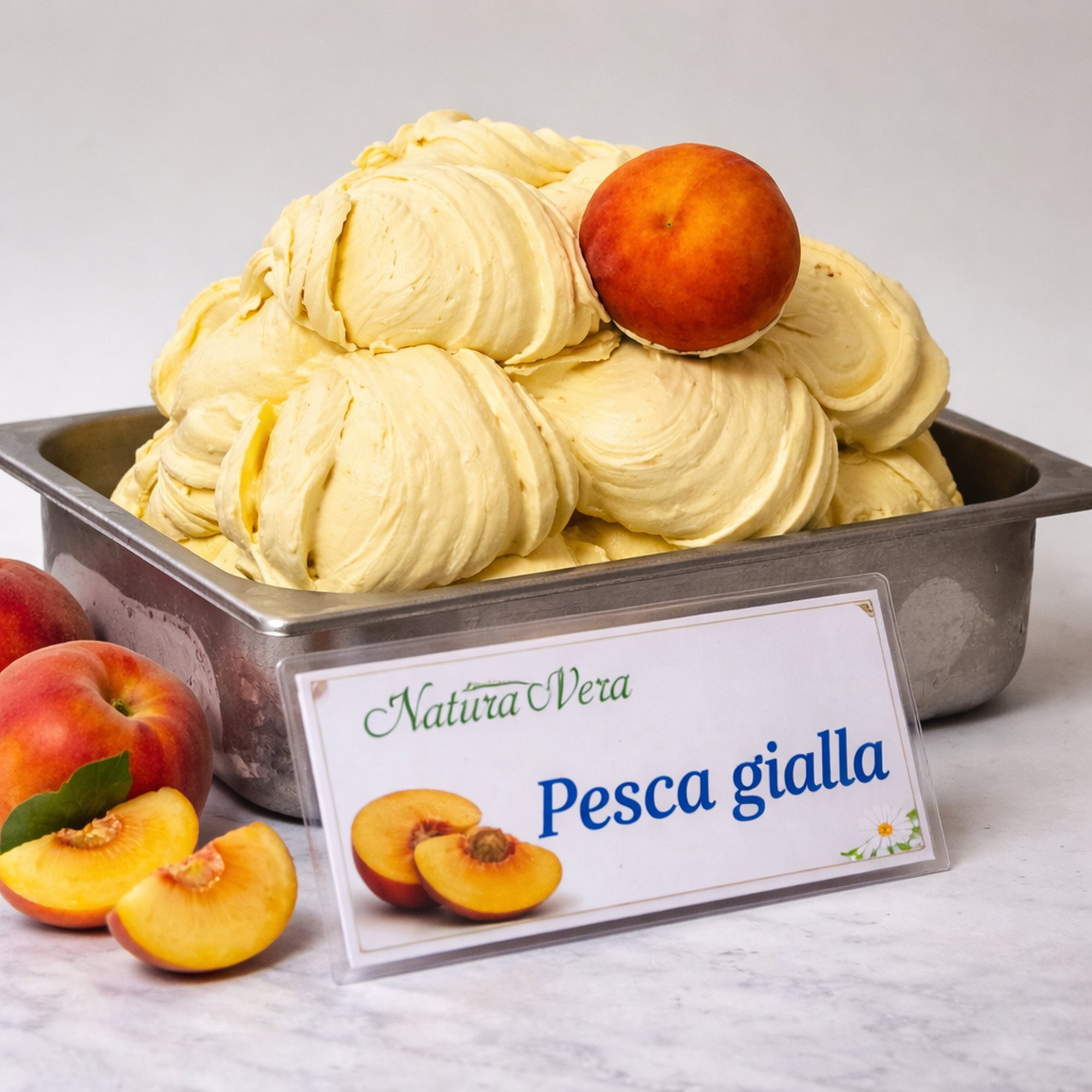 Natura Vera Pronti ist ein hochwertiger Mix zur Eisherstellung mit dem Geschmack nach gelben Pfirsichen.