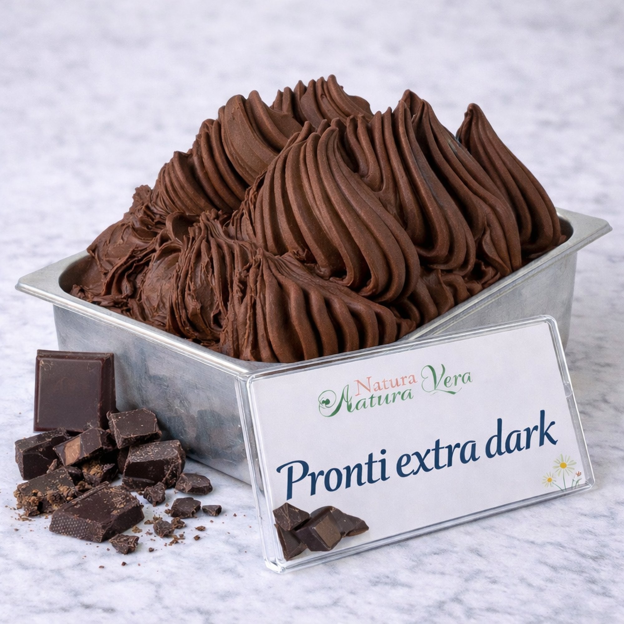 Natura Vera Pronti Extra Dark VEGAN und LACTOSEFREI ist ein hochwertiger Mix zur Eisherstellung mit intensivem Schokoladengeschmack, durch ausgewählten Kakaomix.